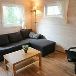 מרפסת, ספה וציוד להכנת תה וקפה זמינים בכל החדרים של מלון Kilefjorden Camping.